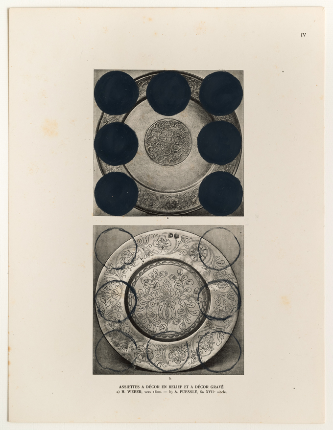 pastel à la cire sur papier imprimé [“Les Étains strasbourgeois du XVIe au XIXe siècles”,