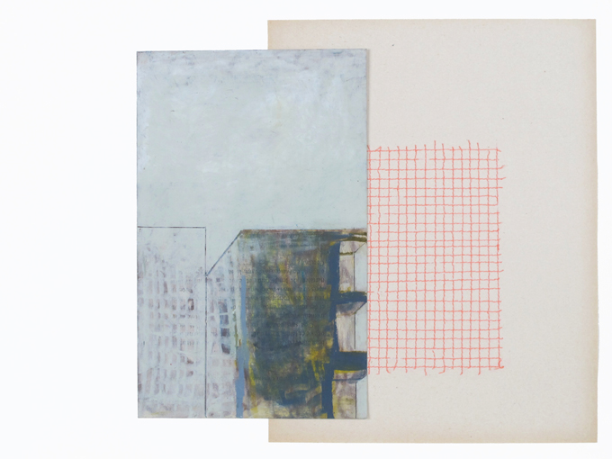 assemblage sur papier vergé ivoire : technique mixte sur papier d'imprimerie et couture fil sur papier de machine à écrire