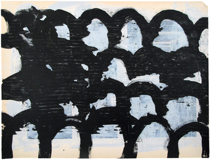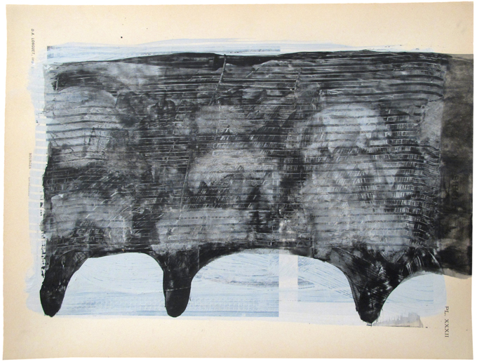 acrylique et crayon sur papier imprimé[Documents de Sculpture française du Moyen-âge, publiés sous la direction de Paul Vitry et Gaston Brière, recueil de 140 planches, In-4, Ateliers photo-mécaniques D.-A. Longuet, Paris, sans date (c. 1910)],